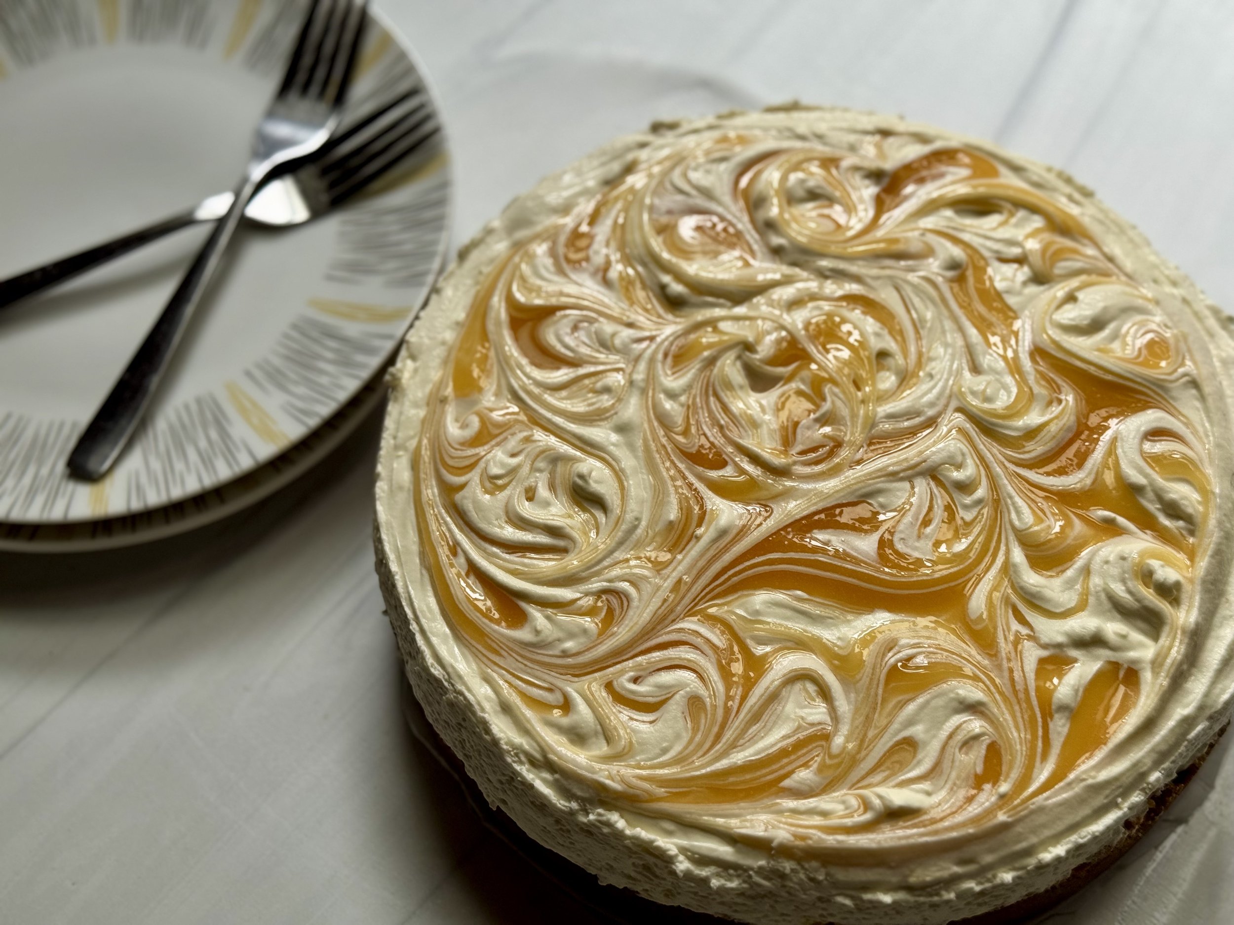 Remove the crust from the fridge, and pour the cheesecake filling into the center of the spring form pan. Evenly spread the filling, and wipe the edges with a clean towel. If desired (this is highly suggested), add several dollops of lemon curd and use a toothpick, knife, or chop stick to nicely swirl it into the top of the cheesecake. Place in the fridge for 6 hours to set before serving. Try your best to be patient, as it does need every minute of that time.